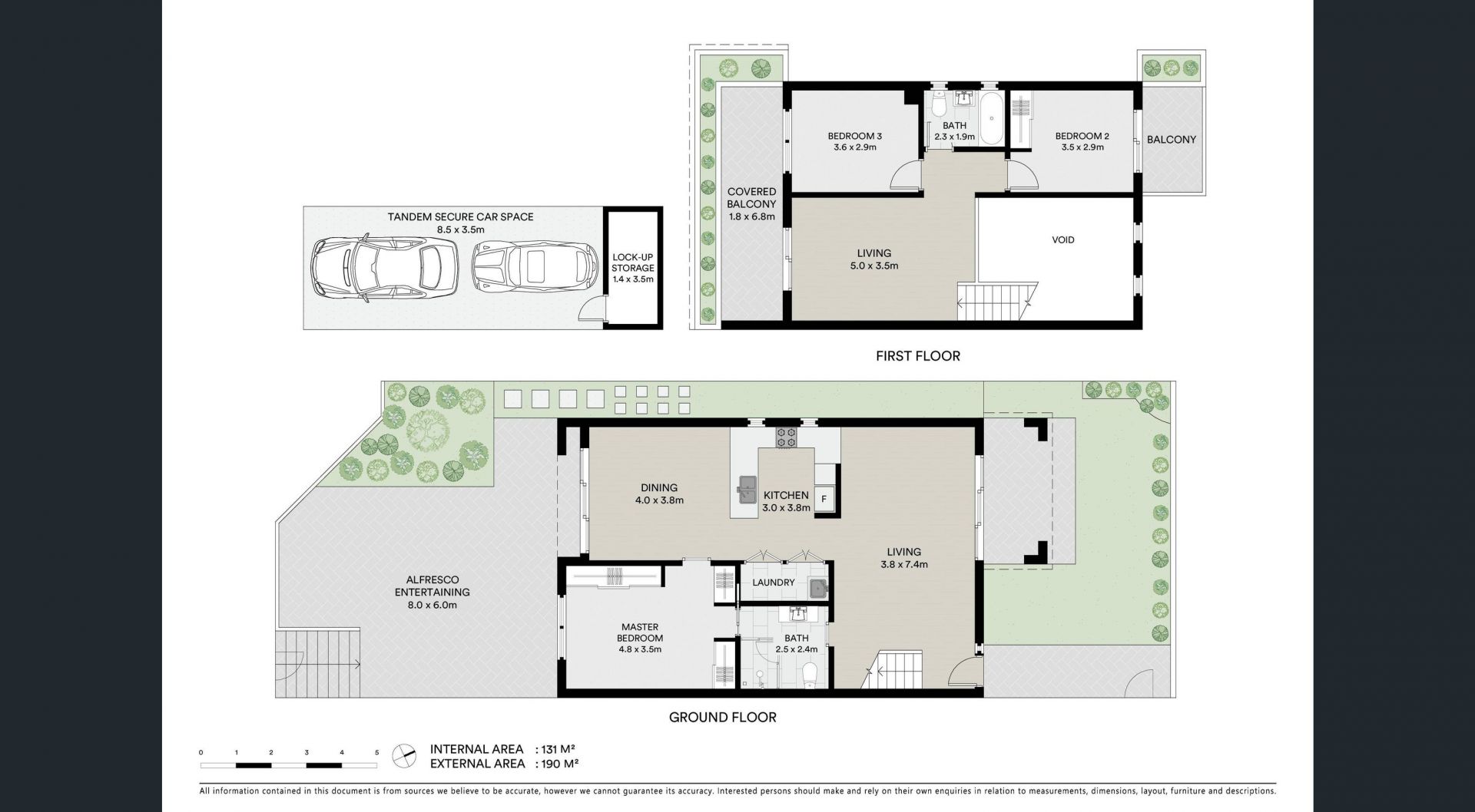 Enter via the front grassy courtyard to a light and airy living room and void ceiling to the upper level. Glass sliding doors open off the lounge out to the north facing patio and garden. There's a fully-equipped designer kitchen (stone tops and Smeg appliances), open plan to a dining area with plenty of storage and built in laundry.